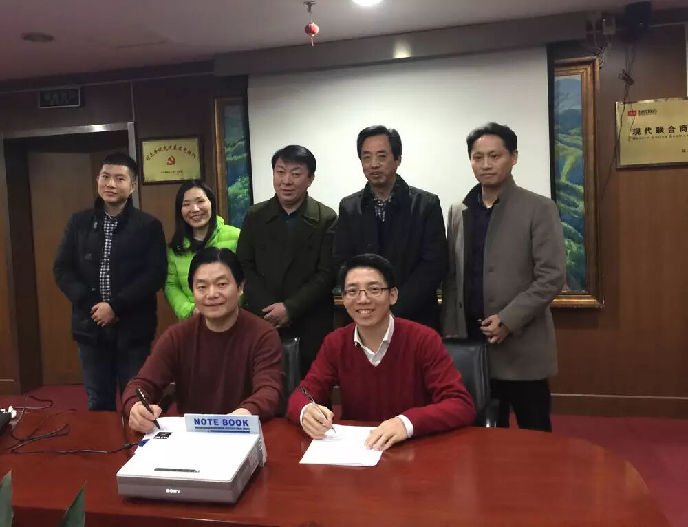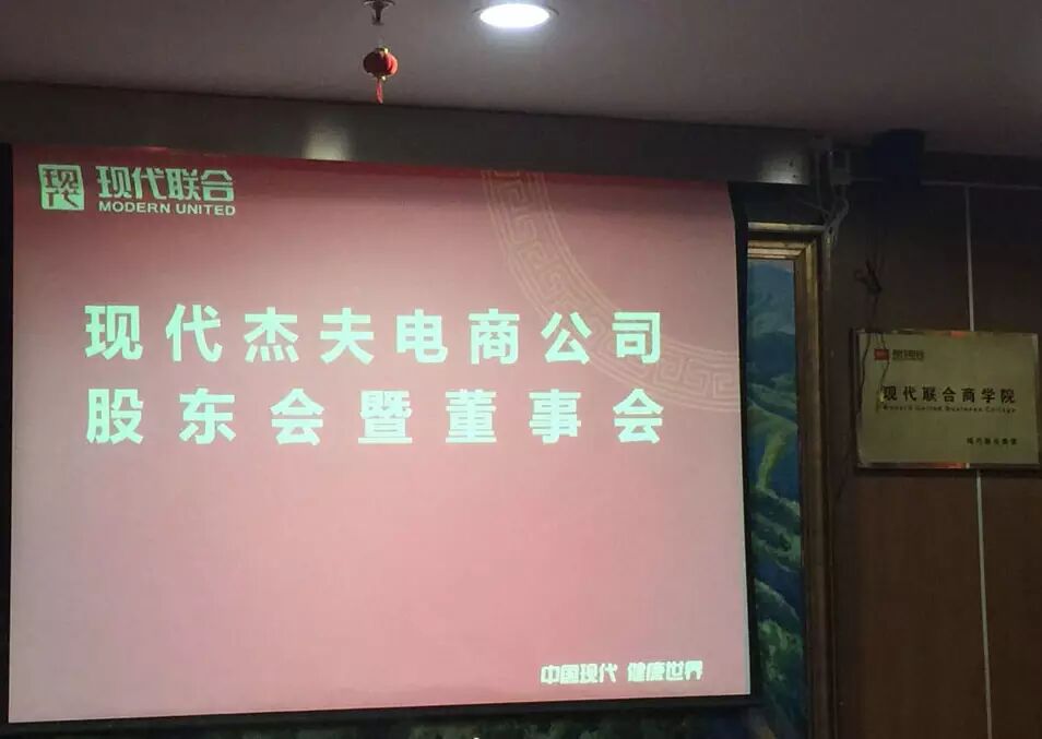 【杰夫快讯】2015年12月24日,淮安现代杰夫电子商务有限公司第一次股东会暨董事会在杭州现代国际大厦召开。杰夫电商集团董事长姜洪峰和现代联合控股集团董事长章鹏飞签署股东大会决议。杰夫电商集团副总经理赖伟丽、现代联合控股集团高级顾问李建国、淮安现代投资集团副总裁周向前和张卫东等出席本次大会。