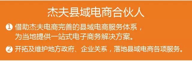 作为一站式区域电商服务的杰夫电商集团,我们的服务范围不仅仅止于此,目前,杰夫电商集团正在全国落地县域电商服务体系,欢迎有识之士加盟杰夫合伙人,全力以赴我国县域电商发展。