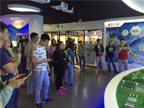张景旭总经理向参观团展示产业园三期工程效果图,大学生村官们参拍照、交流,十分活跃。