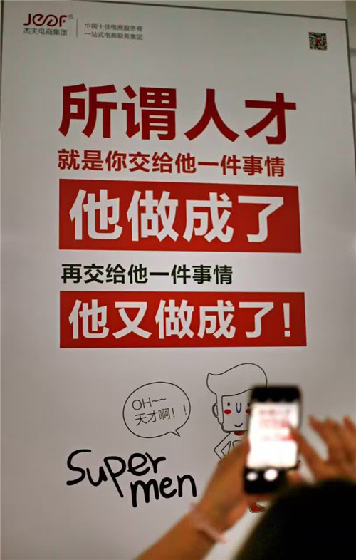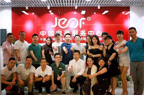 在交流会上,姜总表示,杰夫电商经过10年发展,现在拥有20来个子公司,遍及中国大江南北,业务重点在传统企业转型服务和发展区域电商。考察团嘉宾们被杰夫电商的“盲目乐观,傻傻坚持”的精神所感染,纷纷与杰夫电商企业公仔与文化海报合影。